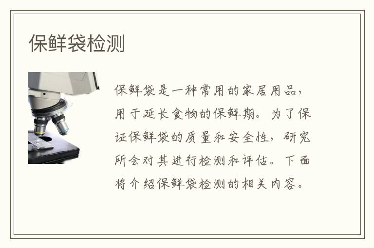關(guān)鍵詞:保鮮袋測試周期,保鮮袋測試標(biāo)準(zhǔn),保鮮袋測試方法