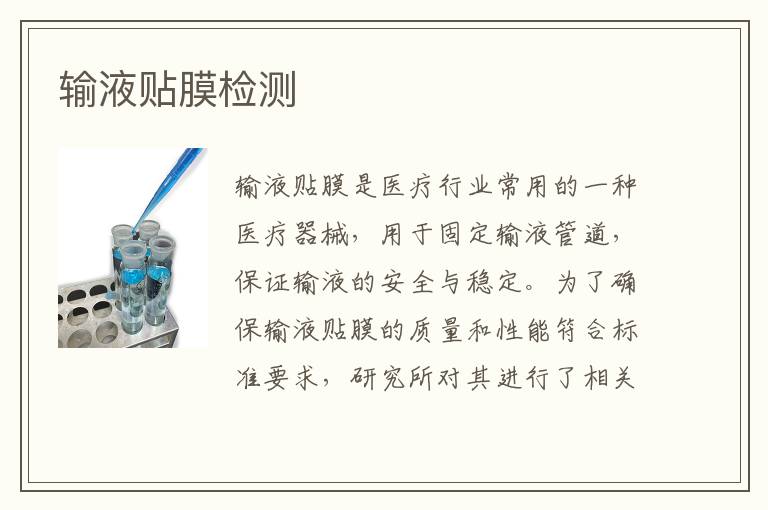 關(guān)鍵詞:輸液貼膜測試方法,輸液貼膜測試標(biāo)準(zhǔn),輸液貼膜測試案例