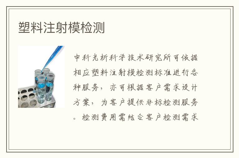關鍵詞:塑料注射模測試機構,塑料注射模測試范圍,塑料注射模測試儀器