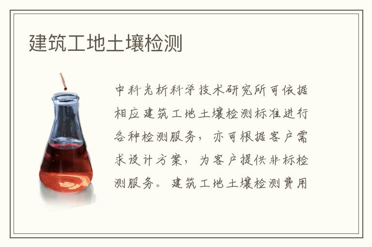 中科光析科學技術(shù)中析研究所可依據(jù)相應(yīng)建筑工地土壤檢測標準進行各種檢測服務(wù),亦可根據(jù)客戶需求設(shè)計方案,為客戶提供非標檢測服務(wù)。建筑工地土壤檢測費用需結(jié)合客戶檢測需求以及實驗復雜程度進行報價。一般7-15個工作日可出具檢測報告。 ```html