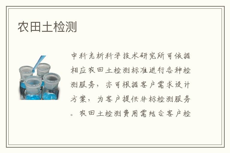 關(guān)鍵詞:農(nóng)田土測試儀器,農(nóng)田土測試范圍,農(nóng)田土測試周期