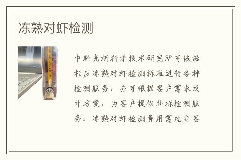 關(guān)鍵詞:凍熟對(duì)蝦測(cè)試方法,凍熟對(duì)蝦測(cè)試儀器,凍熟對(duì)蝦測(cè)試周期