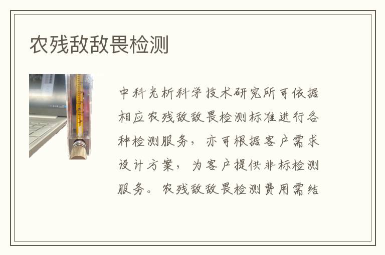 關(guān)鍵詞:農(nóng)殘敵敵畏測(cè)試儀器,農(nóng)殘敵敵畏測(cè)試周期,農(nóng)殘敵敵畏測(cè)試機(jī)構(gòu)