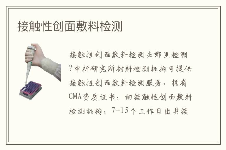 接觸性創(chuàng)面敷料檢測去哪里檢測?中析研究所材料檢測機構(gòu)可提供接觸性創(chuàng)面敷料檢測服務(wù),CMA資質(zhì)認(rèn)證機構(gòu),高新技術(shù)企業(yè),正規(guī)的第三方檢測機構(gòu),7-15個工作日出具接觸性創(chuàng)面敷料檢測報告,檢測周期短、檢測費用低、檢測結(jié)果科學(xué)準(zhǔn)確!