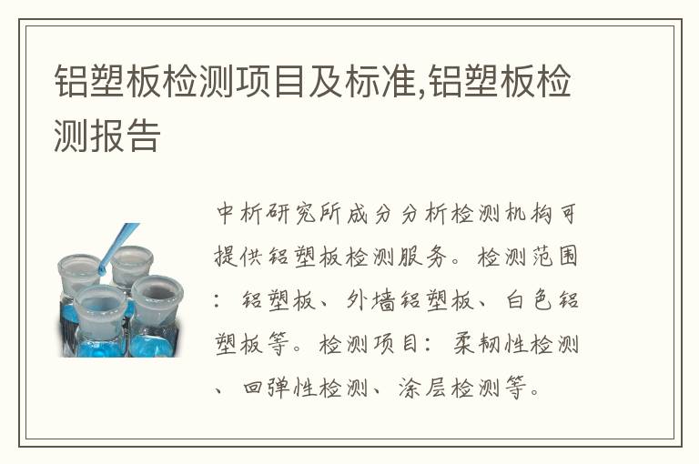 關(guān)鍵詞:鋁塑板項(xiàng)目及標(biāo)準(zhǔn)測(cè)試方法,鋁塑板項(xiàng)目及標(biāo)準(zhǔn)測(cè)試案例,鋁塑板項(xiàng)目及標(biāo)準(zhǔn)測(cè)試儀器