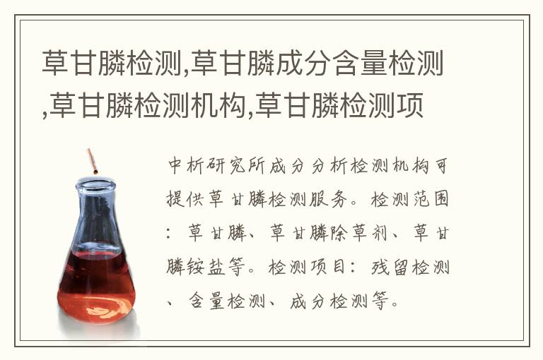 關(guān)鍵詞:草甘膦測試標(biāo)準(zhǔn),草甘膦測試儀器,草甘膦測試機(jī)構(gòu)