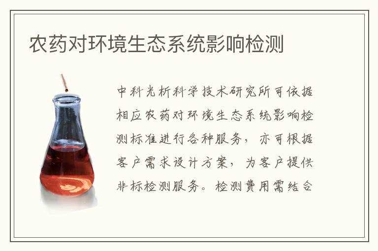 關(guān)鍵詞:農(nóng)藥對(duì)環(huán)境生態(tài)系統(tǒng)影響測(cè)試機(jī)構(gòu),農(nóng)藥對(duì)環(huán)境生態(tài)系統(tǒng)影響測(cè)試周期,農(nóng)藥對(duì)環(huán)境生態(tài)系統(tǒng)影響項(xiàng)目報(bào)價(jià)