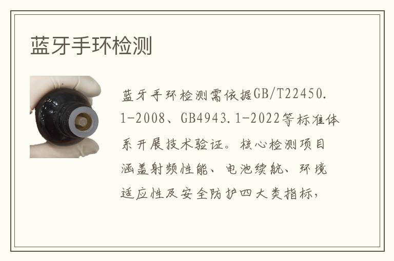 關(guān)鍵詞:藍(lán)牙手環(huán)測(cè)試標(biāo)準(zhǔn),藍(lán)牙手環(huán)項(xiàng)目報(bào)價(jià),藍(lán)牙手環(huán)測(cè)試范圍