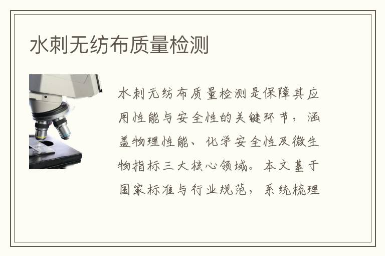 關(guān)鍵詞:水刺無紡布質(zhì)量測試周期,水刺無紡布質(zhì)量項(xiàng)目報價,水刺無紡布質(zhì)量測試儀器