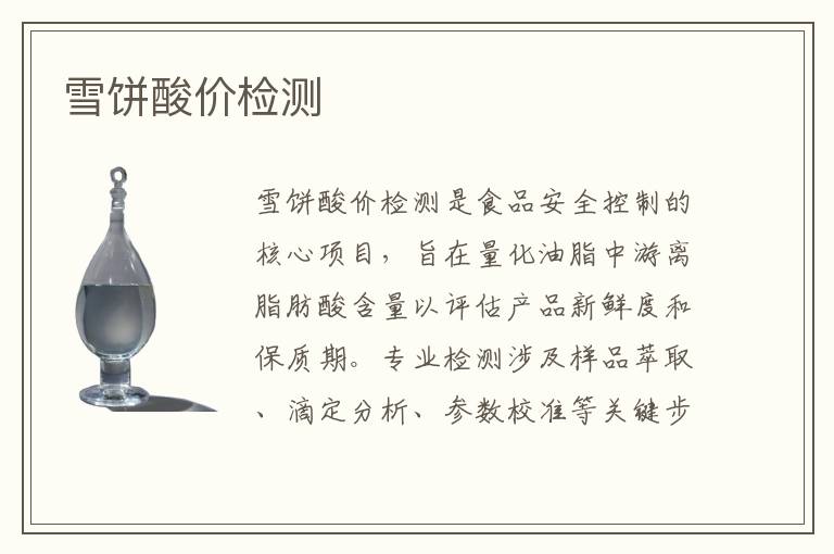 關鍵詞:雪餅酸價測試標準,雪餅酸價測試周期,雪餅酸價測試范圍