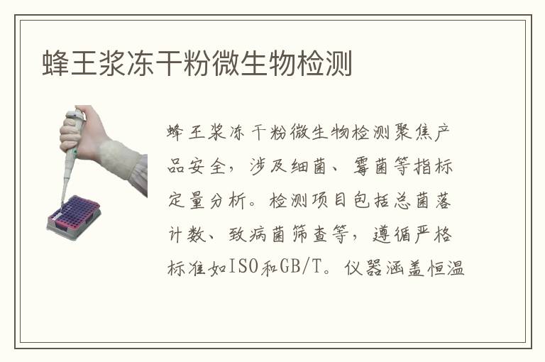 關(guān)鍵詞:蜂王漿凍干粉微生物測(cè)試標(biāo)準(zhǔn),蜂王漿凍干粉微生物測(cè)試方法,蜂王漿凍干粉微生物測(cè)試機(jī)構(gòu)