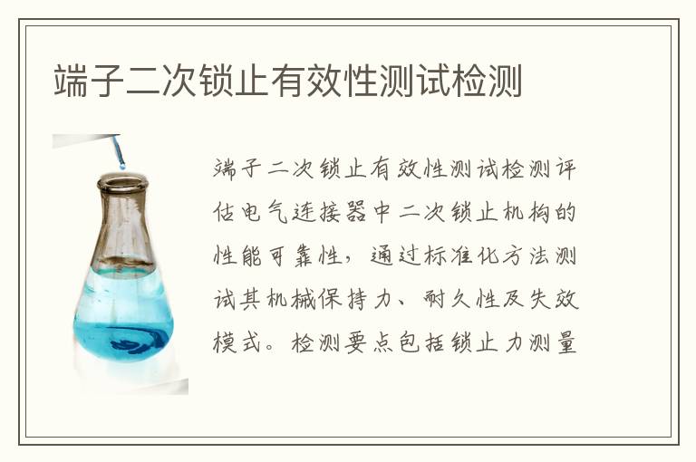 關(guān)鍵詞:端子二次鎖止有效性測試項(xiàng)目報(bào)價(jià),端子二次鎖止有效性測試測試標(biāo)準(zhǔn),端子二次鎖止有效性測試測試案例
