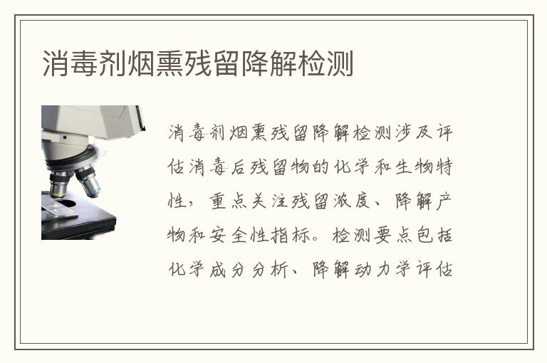 關(guān)鍵詞:消毒劑煙熏殘留降解測試方法,消毒劑煙熏殘留降解測試范圍,消毒劑煙熏殘留降解測試周期