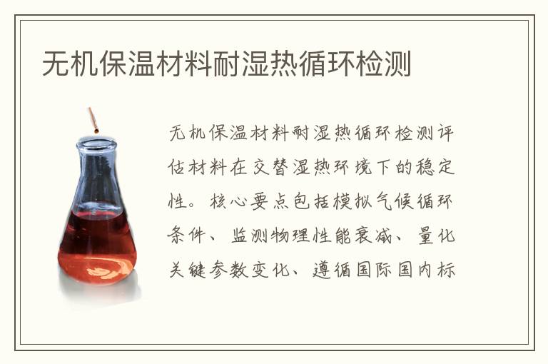 關(guān)鍵詞:無機(jī)保溫材料耐濕熱循環(huán)測試范圍,無機(jī)保溫材料耐濕熱循環(huán)測試周期,無機(jī)保溫材料耐濕熱循環(huán)測試機(jī)構(gòu)