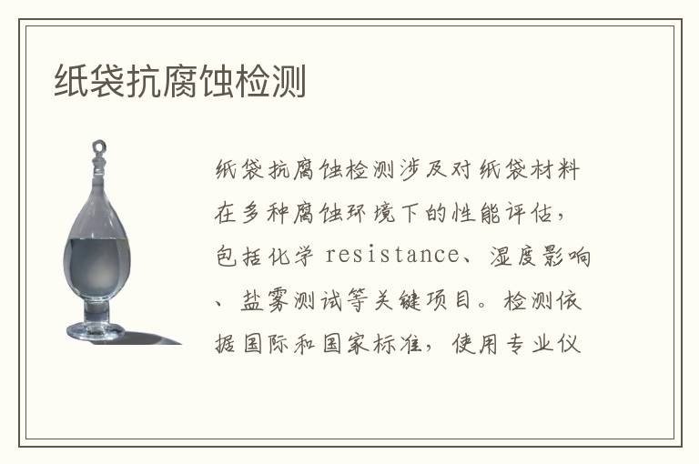 酸堿腐蝕測試:將紙袋樣品浸泡于不同pH值的酸堿溶液中,評估其質量損失、表面變化和強度衰減,以確定抗酸堿腐蝕性能,模擬實際使用中的化學暴露條件。