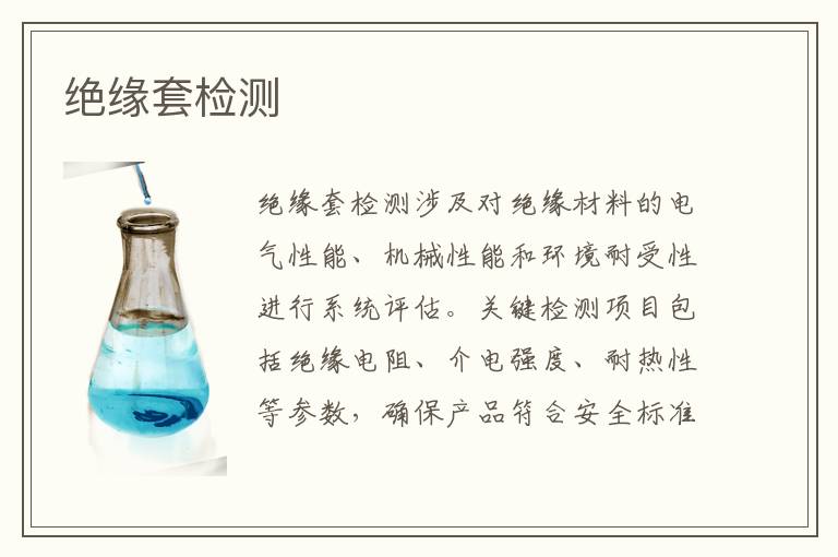 絕緣套檢測(cè)涵蓋電氣、機(jī)械及環(huán)境性能的全面評(píng)估,確保產(chǎn)品安全性與可靠性。關(guān)鍵檢測(cè)要點(diǎn)包括電氣強(qiáng)度、絕緣電阻、耐熱性、耐化學(xué)性等,測(cè)試遵循國際與國家規(guī)范,適用于各類絕緣材料與應(yīng)用場(chǎng)景。