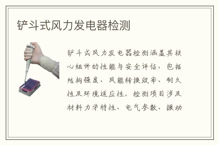 鏟斗式風(fēng)力發(fā)電器檢測涉及對其關(guān)鍵部件的性能、安全和耐久性進行專業(yè)評估。檢測要點包括結(jié)構(gòu)強度、電氣性能、環(huán)境適應(yīng)性等方面,確保設(shè)備符合行業(yè)標準和安全要求,避免運行故障和風(fēng)險。