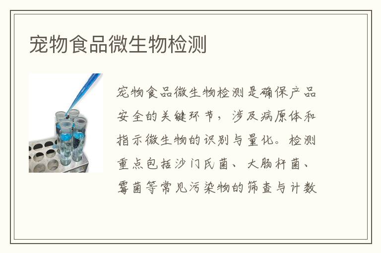 關(guān)鍵詞:寵物食品微生物測(cè)試范圍,寵物食品微生物測(cè)試標(biāo)準(zhǔn),寵物食品微生物測(cè)試案例