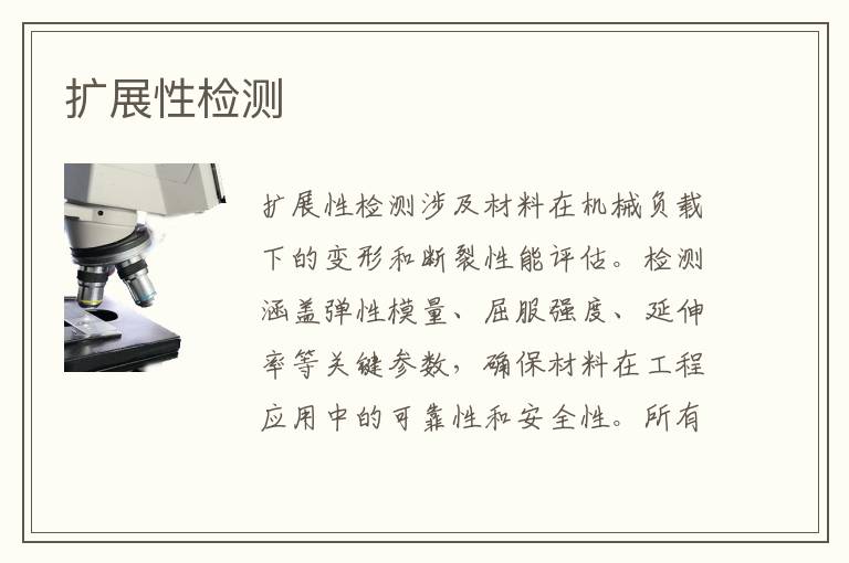 硬度變化檢測:通過壓痕或回彈方法測量材料硬度在擴展過程中的變化,用于監(jiān)控材料老化或加工后的性能衰減情況。