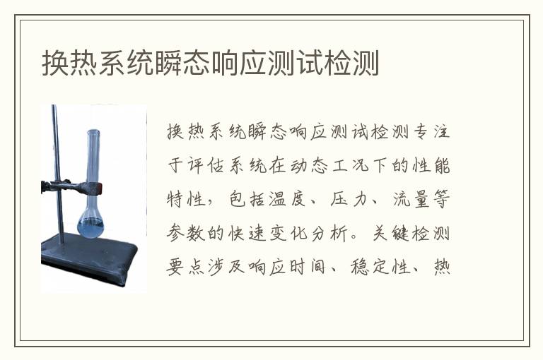 GB/T 18929-2020《換熱器瞬態(tài)熱性能試驗(yàn)方法》:中國(guó)國(guó)家標(biāo)準(zhǔn)詳細(xì)描述了瞬態(tài)測(cè)試中熱效率與穩(wěn)定性的計(jì)算方法,適用于各類換熱設(shè)備的認(rèn)證檢測(cè)。