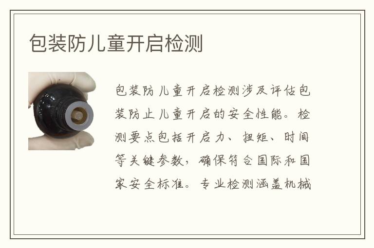 包裝防兒童開啟檢測專注于評估包裝容器的安全性能,防止兒童誤開有害物質(zhì),同時確保成人正常使用。檢測要點包括開啟力測量、兒童模擬操作、環(huán)境適應(yīng)性測試、耐久性評估等,嚴(yán)格遵循國際和國家標(biāo)準(zhǔn),以驗證包裝設(shè)計的有效性和可靠性。