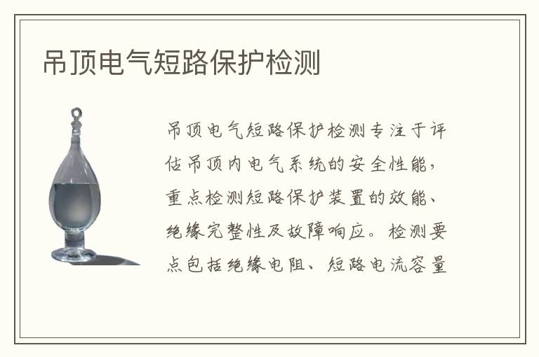關(guān)鍵詞:吊頂電氣短路保護(hù)項(xiàng)目報(bào)價(jià),吊頂電氣短路保護(hù)測(cè)試標(biāo)準(zhǔn),吊頂電氣短路保護(hù)測(cè)試方法
