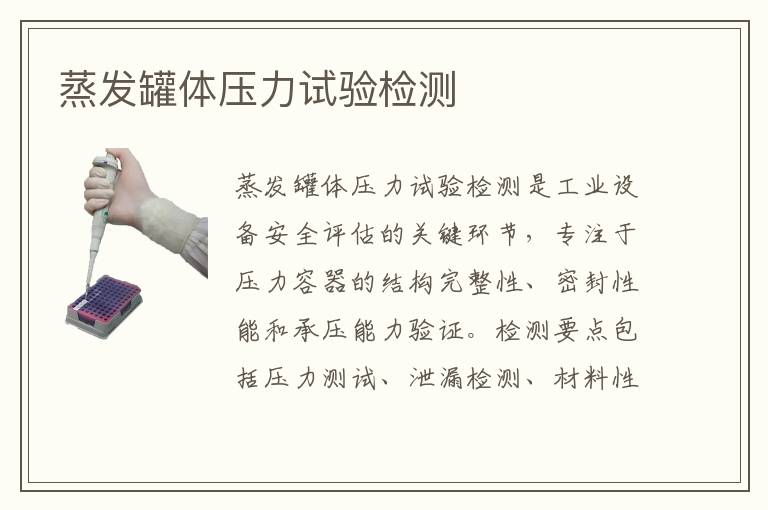 關(guān)鍵詞:蒸發(fā)罐體壓力試驗測試案例,蒸發(fā)罐體壓力試驗測試標(biāo)準(zhǔn),蒸發(fā)罐體壓力試驗測試機構(gòu)