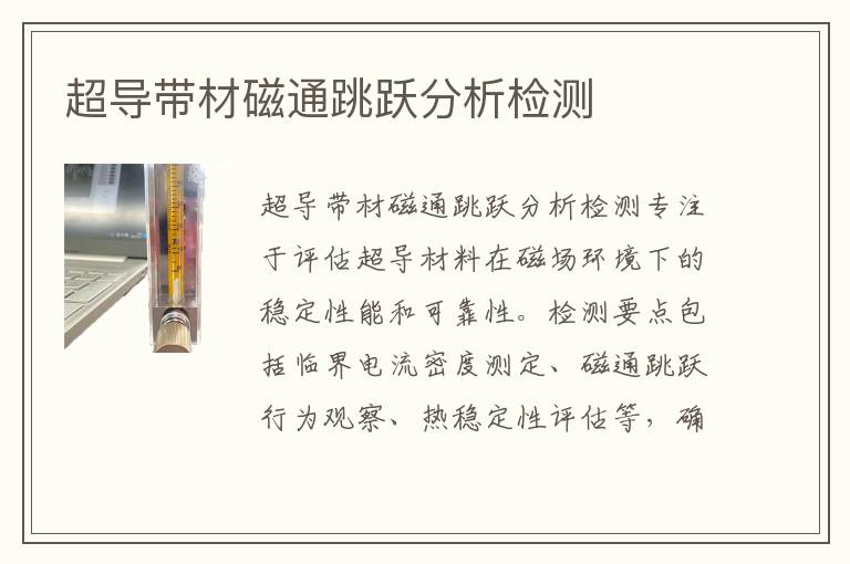 超導(dǎo)帶材磁通跳躍分析檢測涉及對超導(dǎo)材料在磁場作用下的磁通動力學(xué)行為進行系統(tǒng)評估,關(guān)鍵檢測要點包括臨界電流密度測定、磁通跳躍閾值識別、溫度與磁場依賴性測試等,以確保材料在電力傳輸和磁懸浮應(yīng)用中的性能穩(wěn)定性與可靠性。