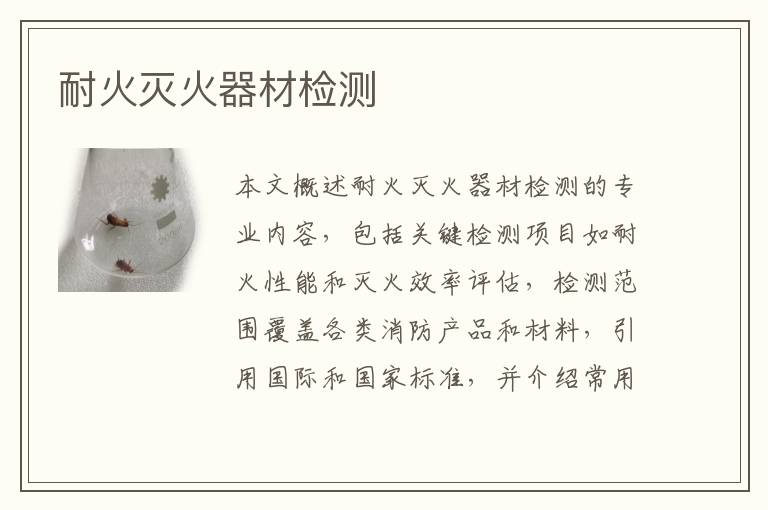 關鍵詞:耐火滅火器材測試標準,耐火滅火器材項目報價,耐火滅火器材測試范圍