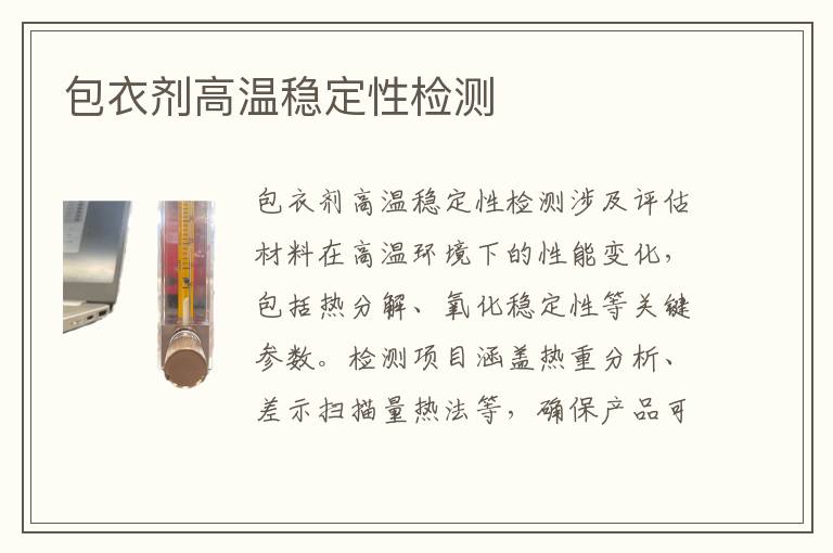 關鍵詞:包衣劑高溫穩(wěn)定性測試案例,包衣劑高溫穩(wěn)定性測試標準,包衣劑高溫穩(wěn)定性測試機構