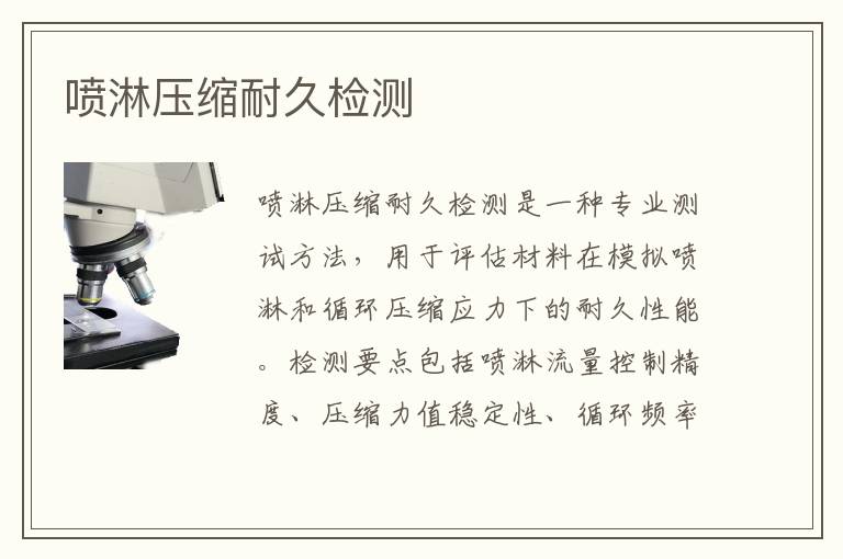 關(guān)鍵詞:噴淋壓縮耐久項(xiàng)目報(bào)價(jià),噴淋壓縮耐久測試方法,噴淋壓縮耐久測試機(jī)構(gòu)