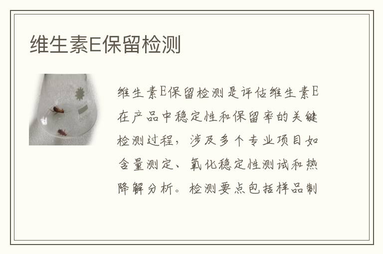 關(guān)鍵詞:維生素E保留測(cè)試案例,維生素E保留測(cè)試方法,維生素E保留測(cè)試機(jī)構(gòu)