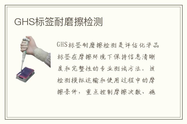 關(guān)鍵詞:GHS標簽?zāi)湍ゲ另椖繄髢r,GHS標簽?zāi)湍ゲ翜y試方法,GHS標簽?zāi)湍ゲ翜y試案例