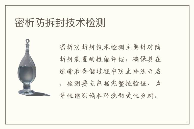 關(guān)鍵詞:密析防拆封技術(shù)測(cè)試周期,密析防拆封技術(shù)測(cè)試標(biāo)準(zhǔn),密析防拆封技術(shù)測(cè)試儀器