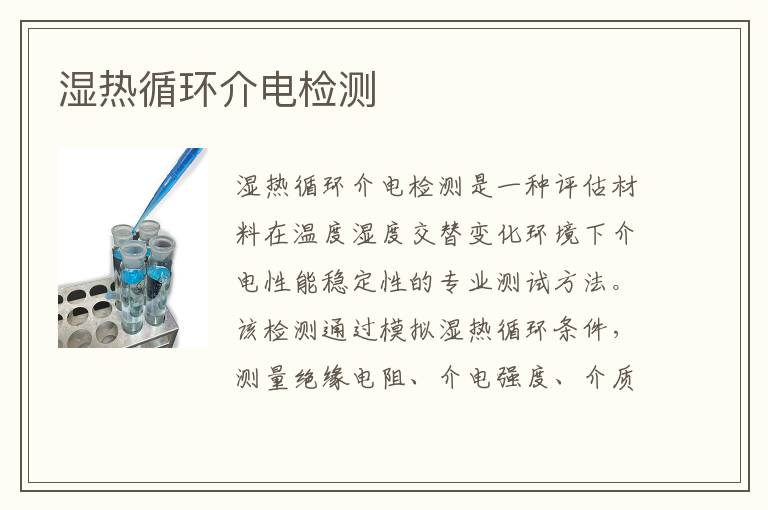 濕熱循環(huán)介電檢測(cè)是一種評(píng)估材料在溫度濕度交替變化環(huán)境下介電性能穩(wěn)定性的專(zhuān)業(yè)測(cè)試方法。該檢測(cè)通過(guò)模擬濕熱循環(huán)條件,測(cè)量絕緣電阻、介電強(qiáng)度、介質(zhì)損耗因數(shù)等關(guān)鍵參數(shù),確保電子絕緣材料在實(shí)際應(yīng)用中的可靠性和安全性,為產(chǎn)品設(shè)計(jì)和質(zhì)量控制提供數(shù)據(jù)依據(jù)。
