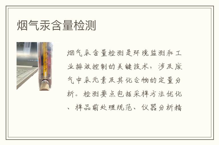 煙氣汞含量檢測是環(huán)境監(jiān)測和工業(yè)排放控制的關鍵技術,涉及廢氣中汞元素及其化合物的定量分析。檢測要點包括采樣方法優(yōu)化、樣品前處理規(guī)范、儀器分析精度控制以及數(shù)據(jù)校準驗證,確保結(jié)果準確可靠,滿足環(huán)保法規(guī)和污染源監(jiān)控需求。