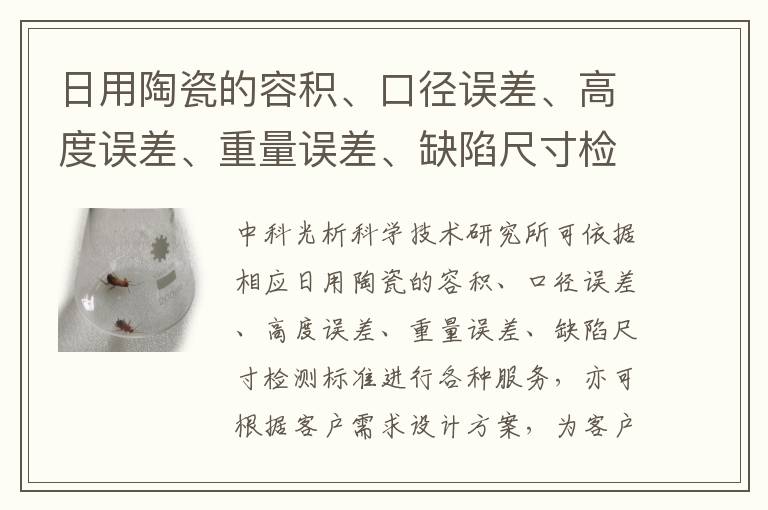 日用陶瓷的容積、口徑誤差、高度誤差、重量誤差、缺陷尺寸檢測(cè)