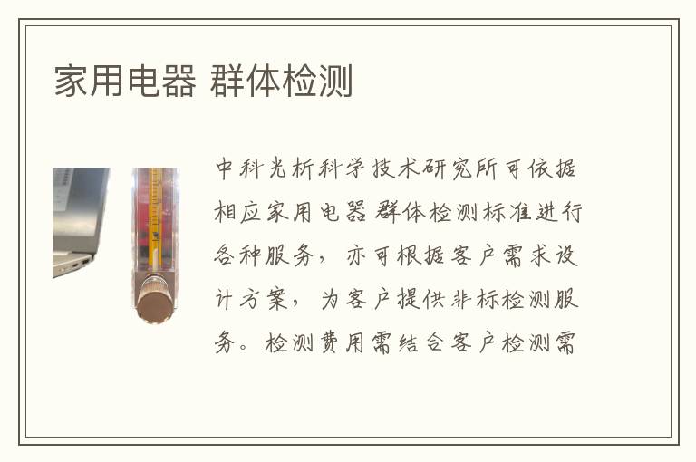 關鍵詞:家用電器群體項目報價,家用電器群體測試標準,家用電器群體測試周期