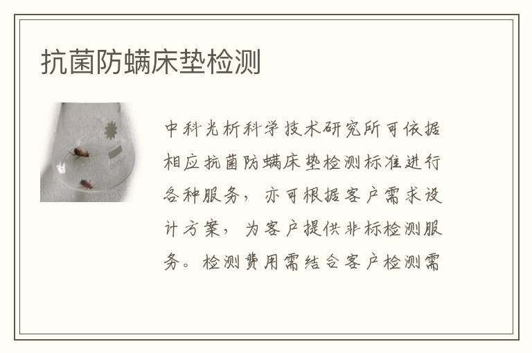關(guān)鍵詞:抗菌防螨床墊測(cè)試方法,抗菌防螨床墊測(cè)試儀器,抗菌防螨床墊測(cè)試范圍