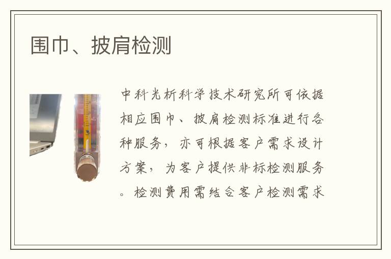 關(guān)鍵詞:圍巾、披肩項(xiàng)目報(bào)價(jià),圍巾、披肩測(cè)試標(biāo)準(zhǔn),圍巾、披肩測(cè)試方法