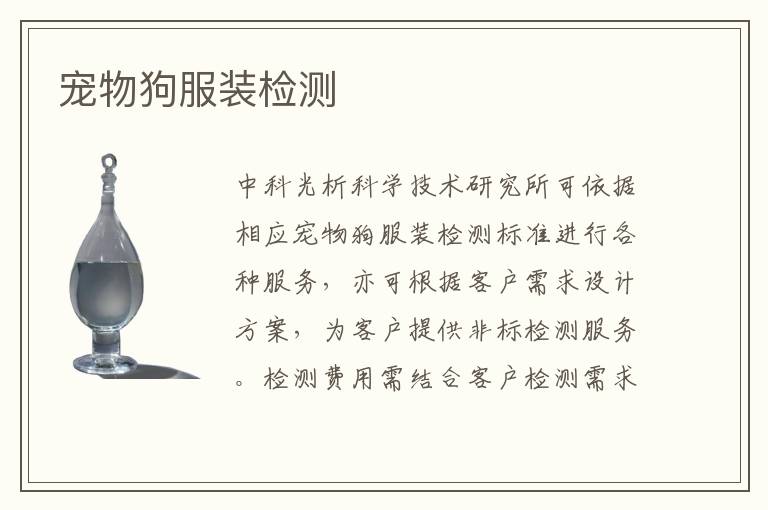 關(guān)鍵詞:寵物狗服裝測試周期,寵物狗服裝測試范圍,寵物狗服裝測試方法