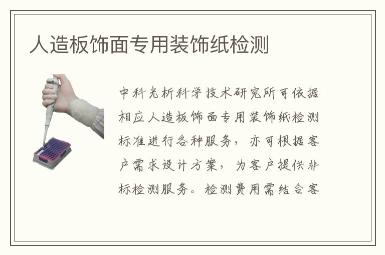 關(guān)鍵詞:人造板飾面專用裝飾紙測試周期,人造板飾面專用裝飾紙測試儀器,人造板飾面專用裝飾紙測試機構(gòu)