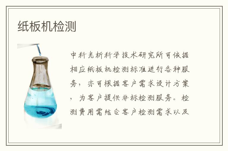 紙板機(jī)檢測是紙板生產(chǎn)過程中對原材料、半成品及成品進(jìn)行質(zhì)量控制的關(guān)鍵環(huán)節(jié)。隨著包裝、印刷、建筑等行業(yè)對紙板性能要求的提高,檢測技術(shù)的精準(zhǔn)性與全面性直接影響產(chǎn)品合格率及市場競爭力。紙板機(jī)檢測通過科學(xué)手段評估紙板的物理性能、化學(xué)指標(biāo)及工藝適配性,確保其符合行業(yè)標(biāo)準(zhǔn)和客戶需求,同時為生產(chǎn)工藝優(yōu)化提供數(shù)據(jù)支持。