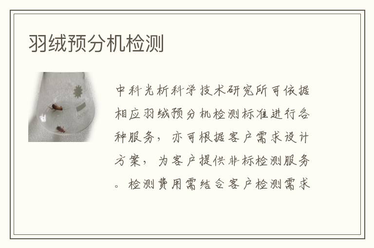 關(guān)鍵詞:羽絨預(yù)分機(jī)測試范圍,羽絨預(yù)分機(jī)測試機(jī)構(gòu),羽絨預(yù)分機(jī)測試標(biāo)準(zhǔn)