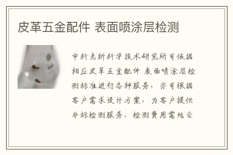 關(guān)鍵詞:皮革五金配件表面噴涂層測(cè)試標(biāo)準(zhǔn),皮革五金配件表面噴涂層測(cè)試方法,皮革五金配件表面噴涂層測(cè)試機(jī)構(gòu)