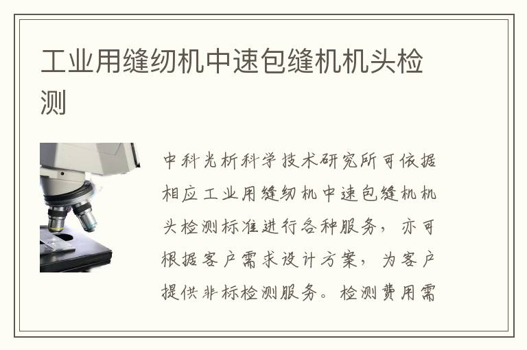 工業(yè)用縫紉機(jī)中速包縫機(jī)機(jī)頭檢測涵蓋機(jī)械精度、運行穩(wěn)定性和安全性能的評估,包括針桿行程、送料同步性、線張力控制等關(guān)鍵項目,確保設(shè)備符合行業(yè)規(guī)范,提升生產(chǎn)可靠性和縫紉質(zhì)量。