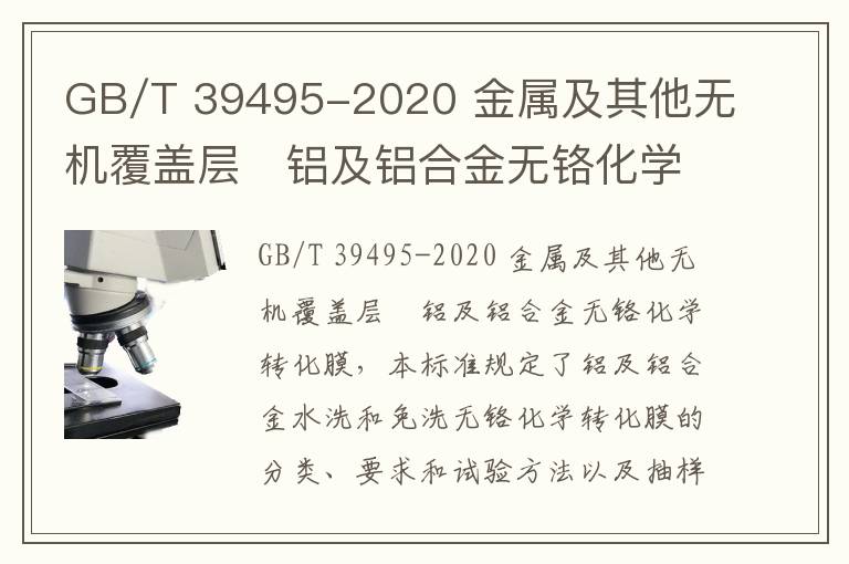 GB/T 39495-2020 金屬及其他無機(jī)覆蓋層 鋁及鋁合金無鉻化學(xué)轉(zhuǎn)化膜