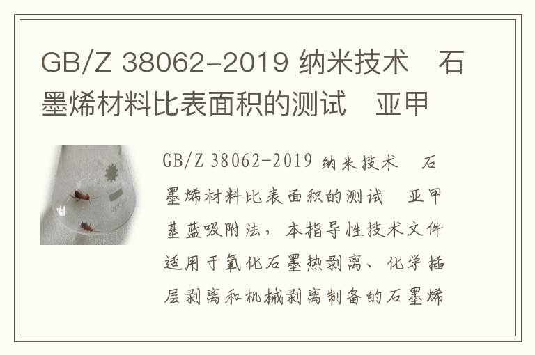 GB/Z 38062-2019 納米技術(shù) 石墨烯材料比表面積的測試 亞甲基藍(lán)吸附法,本指導(dǎo)性技術(shù)文件適用于氧化石墨熱剝離、化學(xué)插層剝離和機械剝離制備的石墨烯材料比表面積的測試。