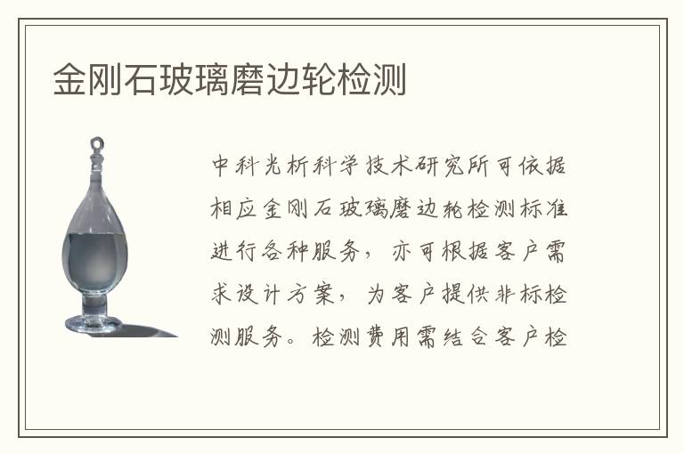 關(guān)鍵詞:金剛石玻璃磨邊輪測(cè)試周期,金剛石玻璃磨邊輪項(xiàng)目報(bào)價(jià),金剛石玻璃磨邊輪測(cè)試標(biāo)準(zhǔn)