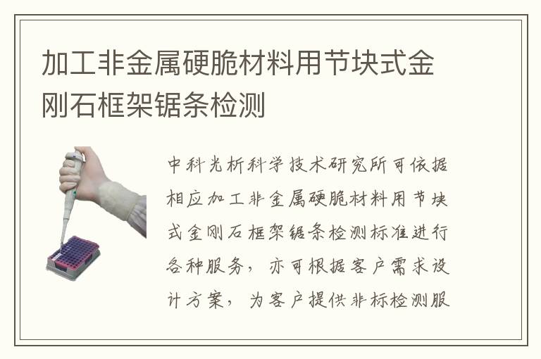 關(guān)鍵詞:加工非金屬硬脆材料用節(jié)塊式金剛石框架鋸條測(cè)試范圍,加工非金屬硬脆材料用節(jié)塊式金剛石框架鋸條測(cè)試方法,加工非金屬硬脆材料用節(jié)塊式金剛石框架鋸條測(cè)試周期